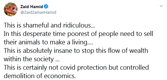 This is shameful and ridiculous... In this desperate time poorest of people need to sell their animals to make a living.... This is absolutely insane to stop this flow of wealth within the society ... This is certainly not covid protection but controlled demolition of economics.
