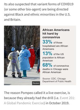 I have read that they have been experimenting with viruses that attack only a certain ethnicity or race. A kind of ethnic bioweapon. Bill gates was surprised that his virus has not affected people in Pakistan and India. Next day he calls IK to discuss more vaccinations... 🙄 .