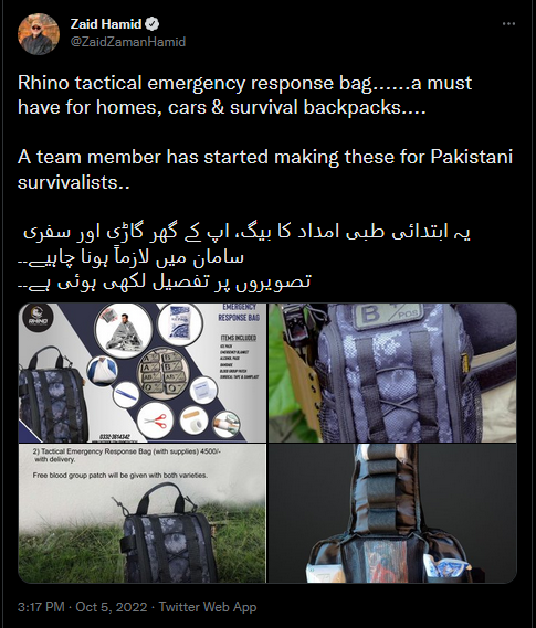 Rhino tactical emergency response bag......a must have for homes, cars & survival backpacks.... A team member has started making these for Pakistani survivalists.. یہ ابتدائی طبی امداد کا بیگ، اپ کے گھر گاڑی اور سفری سامان میں لازماً ہونا چاہیے۔۔ تصویروں پر تفصیل لکھی ہوئی ہے۔۔