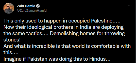 This only used to happen in occupied Palestine..... Now their ideological brothers in India are deploying the same tactics.... Demolishing homes for throwing stones! And what is incredible is that world is comfortable with this.... Imagine if Pakistan was doing this to Hindus...