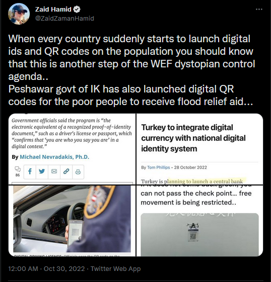 When every country suddenly starts to launch digital ids and QR codes on the population you should know that this is another step of the WEF dystopian control agenda.. Peshawar govt of IK has also launched digital QR codes for the poor people to receive flood relief aid...